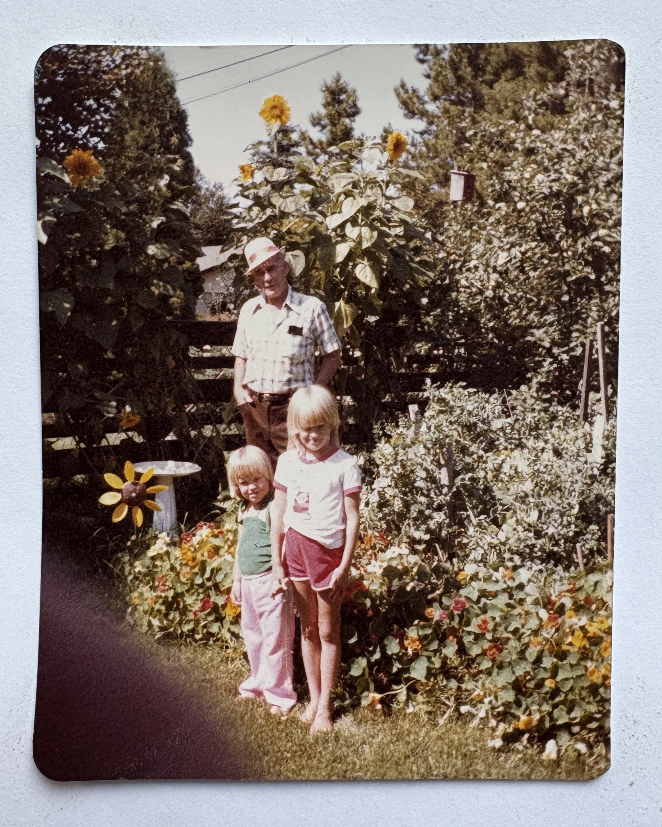 From l to r; dad’s thumb, me, Grandpa and sister.